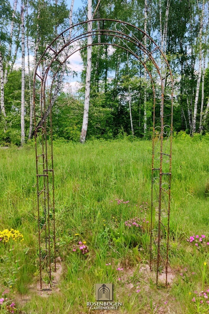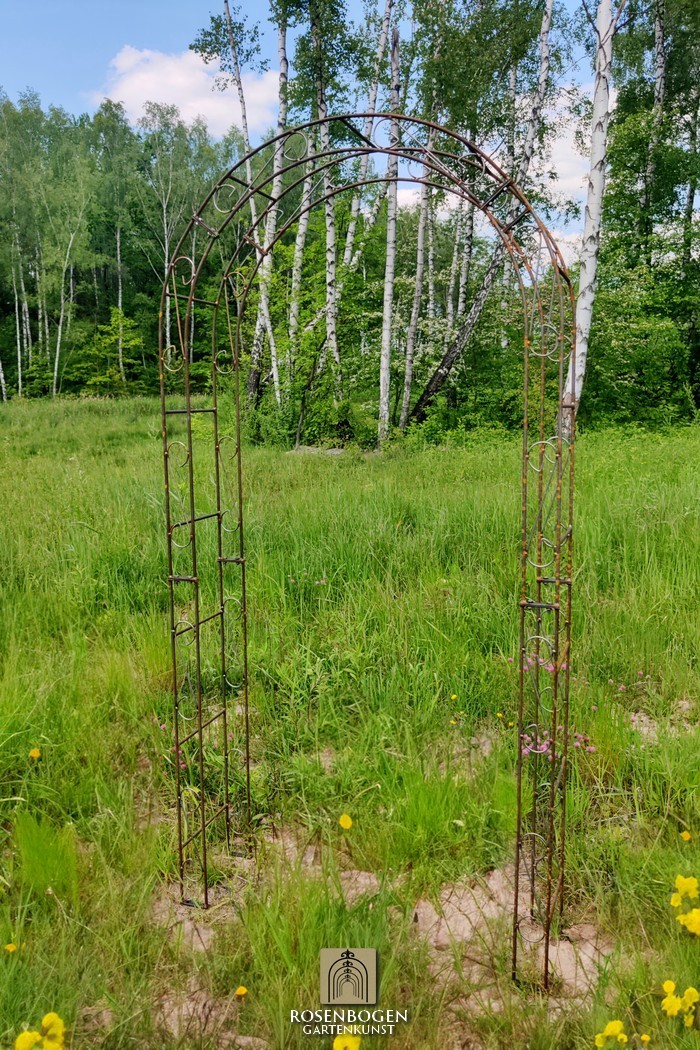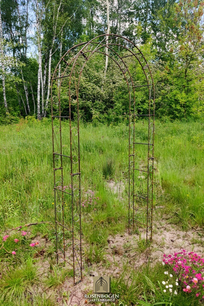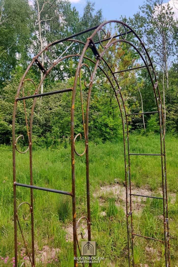 Rosenbågens höjd är tillräcklig för att ge stöd åt alla växter och har tillverkats för hand med en klassisk design. Den svepande ornamentiken och den eleganta formen ger dig många designmöjligheter. När den placeras fristående ger rosenbågen en stabil plats för både prydnadsväxter och nyttoväxter som druvor. Den fungerar även utmärkt som ett dekorativt trädgårdselement och kan användas som insynsskydd eller som en staty i trädgården.