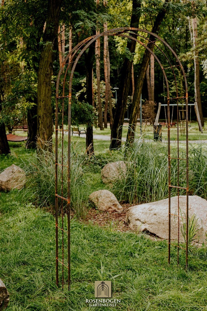 Vi erbjuder rosenbågen i en rostfärgad, galvaniserad och svart version. Den här högkvalitativa rosenbågen är det perfekta klätterstödet för alla klätterväxter, som t.ex. rosor. Höjden på rosenbågen är tillräcklig för alla behov. De djärva dekorationerna och den minimalistiska formen garanterar många designalternativ för din trädgård. Den fungerar också som ett mycket elegant, dekorativt trädgårdselement, även utan växter.