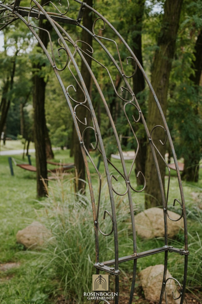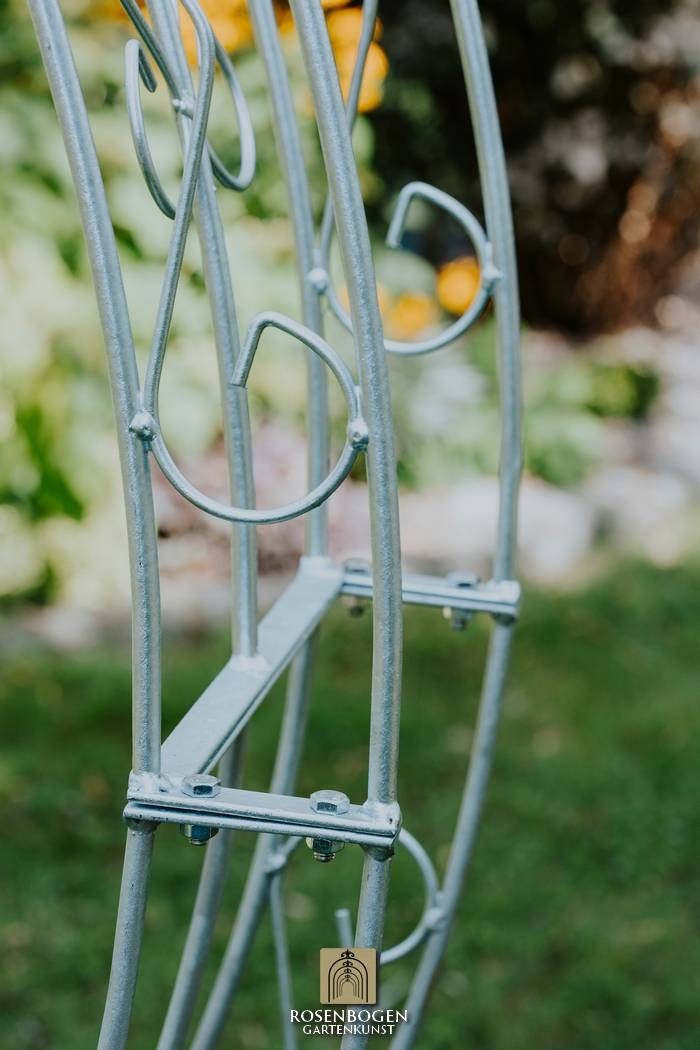Vi presenterar stolt vår halvovala Rosenbåge, som mäter H x 220 cm, B x 220 cm och D x 33 cm. Den har en total vikt på 27 kg, vilket gör den både robust och hållbar. Tillverkad av 20x4 mm plattstänger, 10 mm stålstång och 8 mm stålstång, är denna båge designad för att ge ett långvarigt stöd till dina växter. Den halvcirkelformade designen ger ett stiligt och funktionellt element för din trädgård.