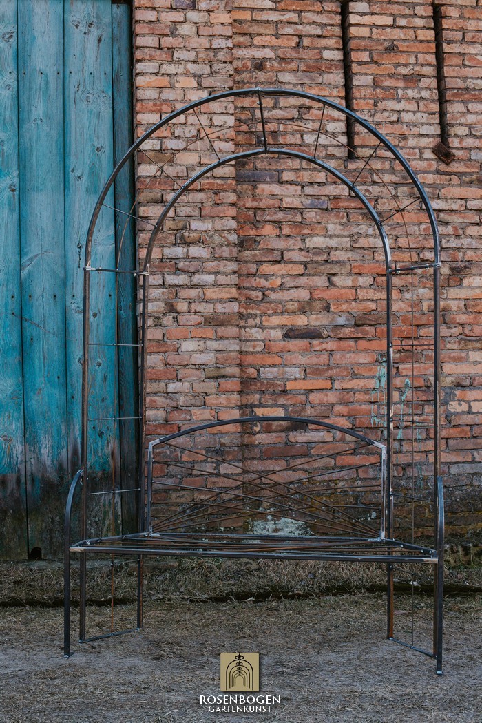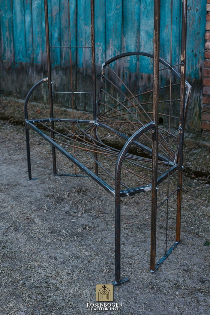 Vi erbjuder rosenbågen med bänk i en rostfärgad, galvaniserad och svart version. Denna högkvalitativa rosenbåge är det perfekta klätterstödet för alla klätterväxter, som t.ex. rosor. Höjden på rosenbågen är tillräcklig för alla behov. De djärva dekorationerna och den minimalistiska formen garanterar många designalternativ för din trädgård. Den fungerar också som ett mycket elegant, dekorativt trädgårdselement, även utan växter.