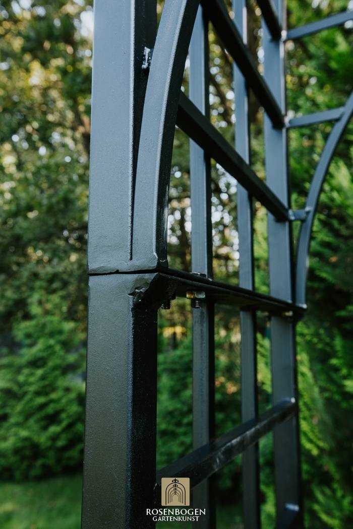 Den mest solida JULIAN-Rosenbåge i kollektionen: 64 kg vikt, 150 cm bred, tillverkad av robust järn. Finns i rost, svart eller varmförzinkat utförande.