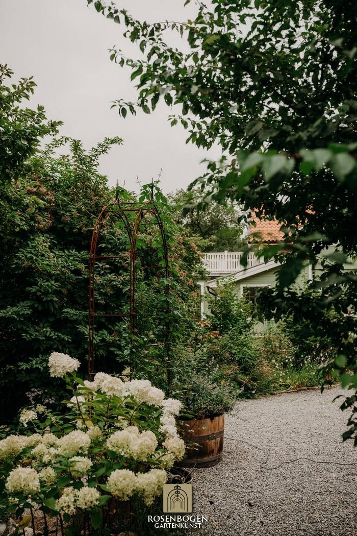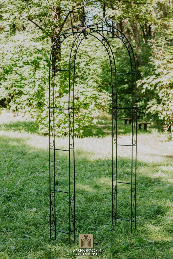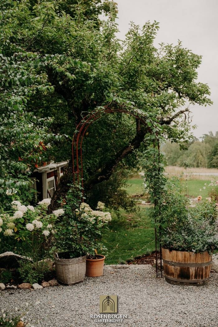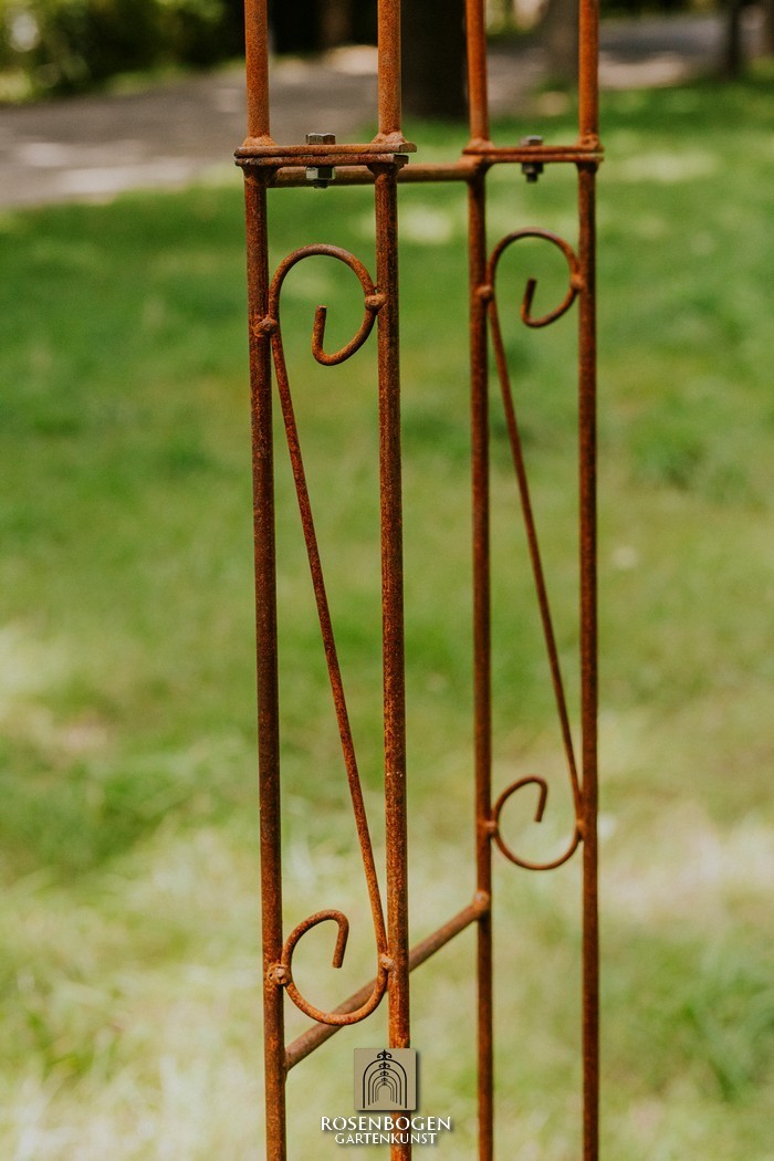 Rosenbågen LENA, tillverkad av massivt järn, ger trädgården en elegant och tidlös charm. Vi erbjuder denna modell i tre utföranden: rostfärgad, galvaniserad och svart. Denna vackra och robusta rosenbåge i högkvalitativ metall fungerar perfekt som klätterstöd för alla typer av klätterväxter, såsom rosor och andra slingrande blommor. Tack vare sin generösa höjd skapar den gott om utrymme för växterna att växa fritt. Varje exemplar är omsorgsfullt tillverkat för hand och håller högsta kvalitet. Den svepande ornamentiken i kombination med den eleganta designen öppnar upp för många kreativa möjligheter i trädgårdsplaneringen. Fristående ger rosenbågen stabilt stöd åt både prydnadsväxter och nyttoväxter, såsom vindruvor. Den fungerar även som ett dekorativt inslag i trädgården – med eller utan växter – och kan dessutom användas som ett stilfullt arkitektoniskt element.