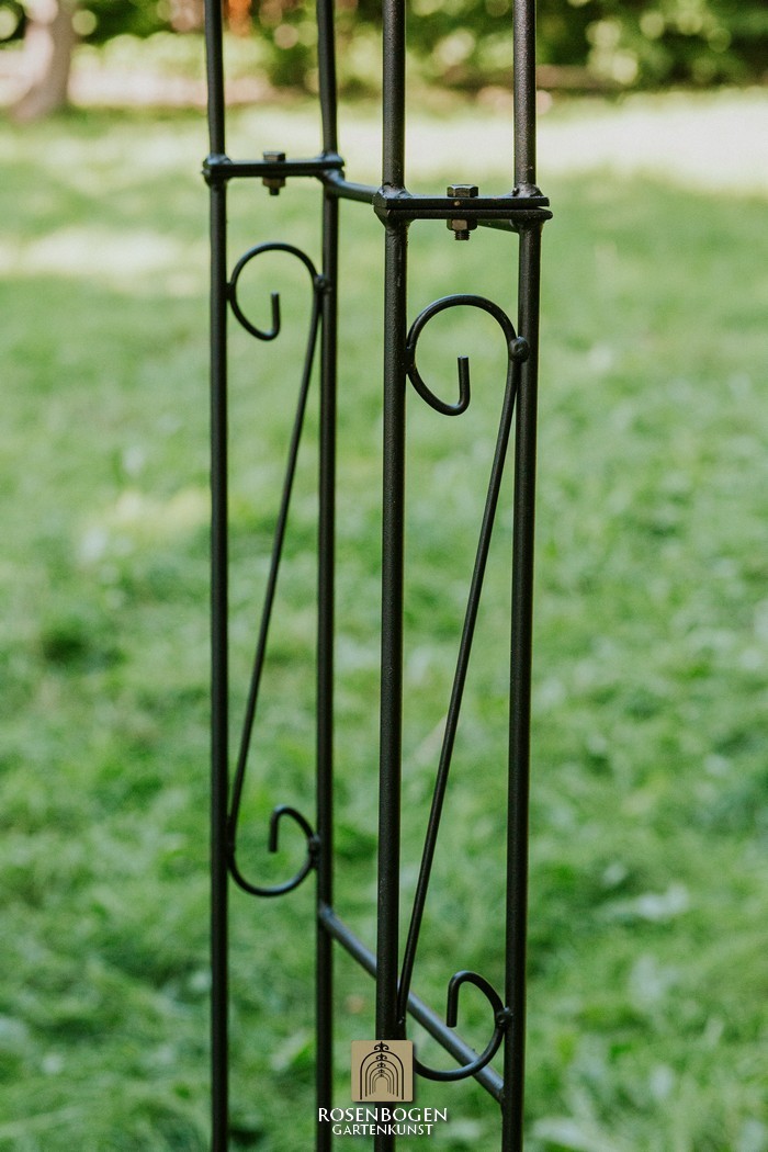 LENA rosenbåge av massivt järn, finns i bredder från 120 till 200 cm. Ytbehandling: rostfärgad, galvaniserad, svart