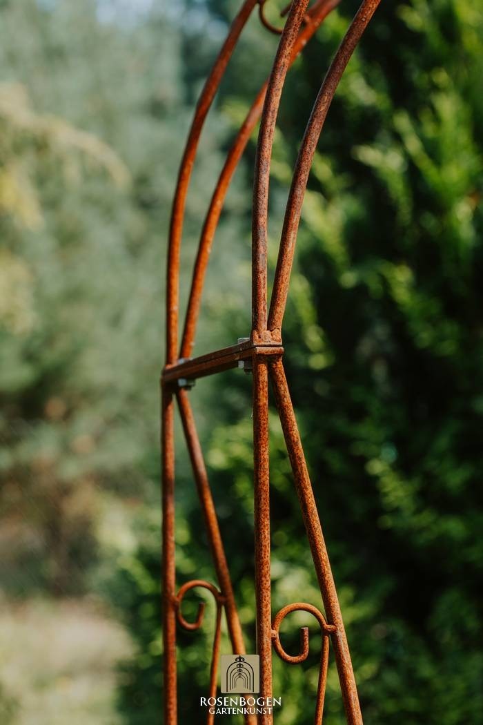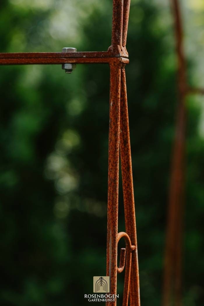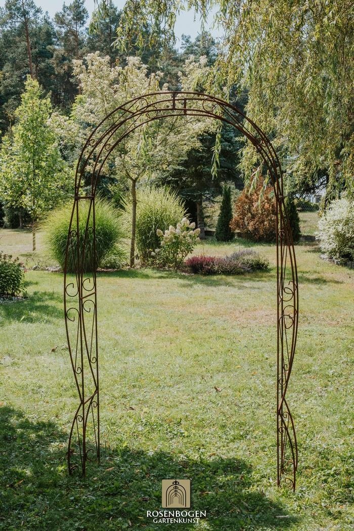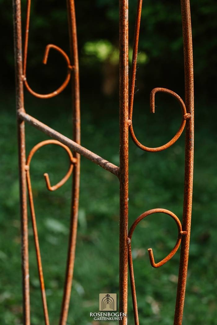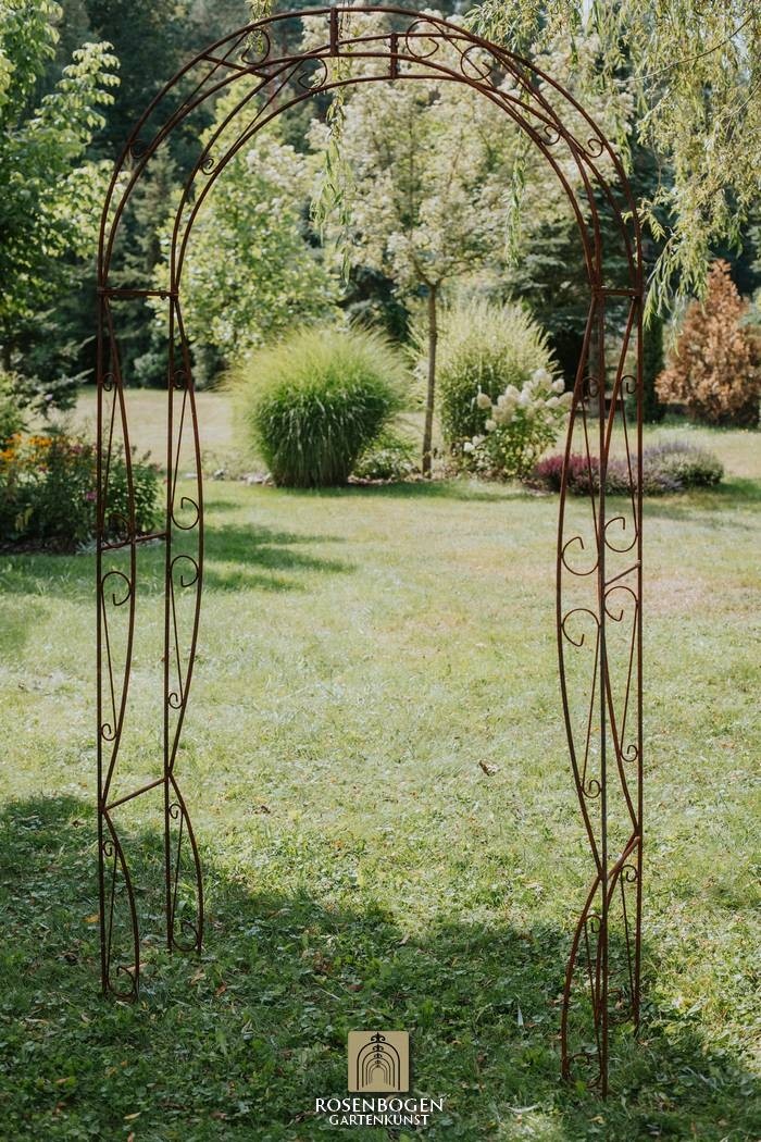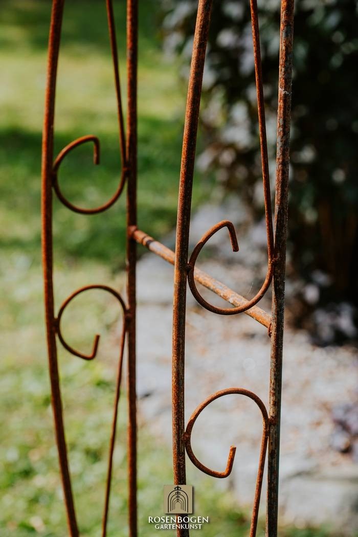 Vår handgjorda rosenbåge NINA i massivt järn kombinerar kvalitet och elegans på högsta nivå. Den är både robust och väderbeständig, vilket gör den till det perfekta stödet för klätterrosor och andra klätterväxter, samtidigt som den skapar en dekorativ höjdpunkt i din trädgård.
