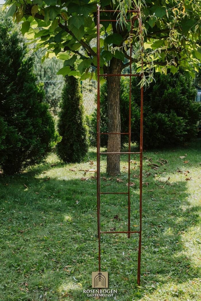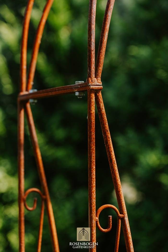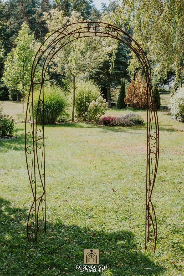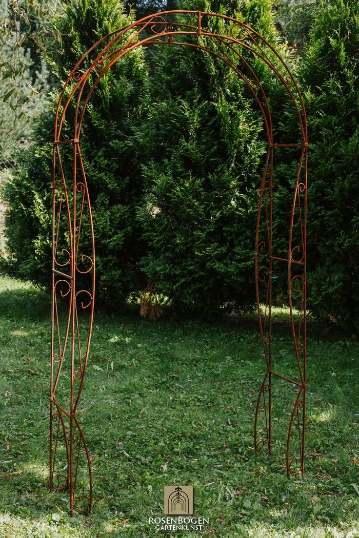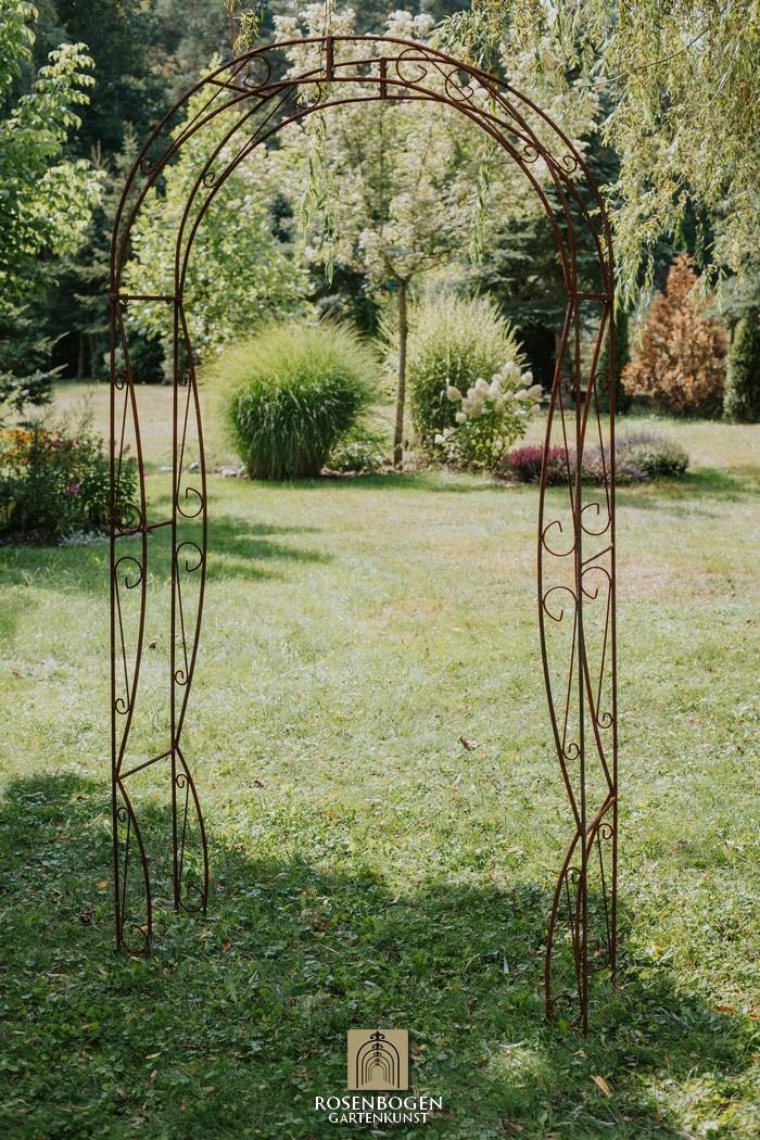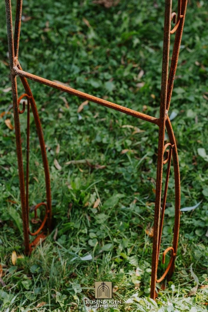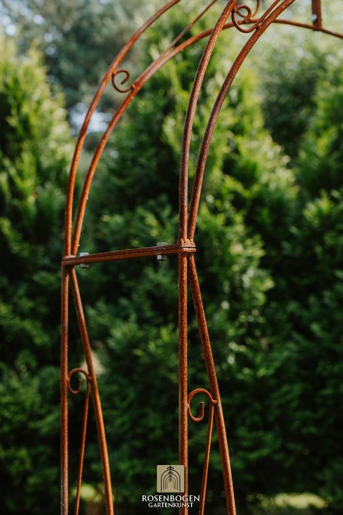 Vår handgjorda rosenbåge NINA i massivt järn kombinerar kvalitet och elegans på högsta nivå. Den är både robust och väderbeständig, vilket gör den till det perfekta stödet för klätterrosor och andra klätterväxter, samtidigt som den skapar en dekorativ höjdpunkt i din trädgård.