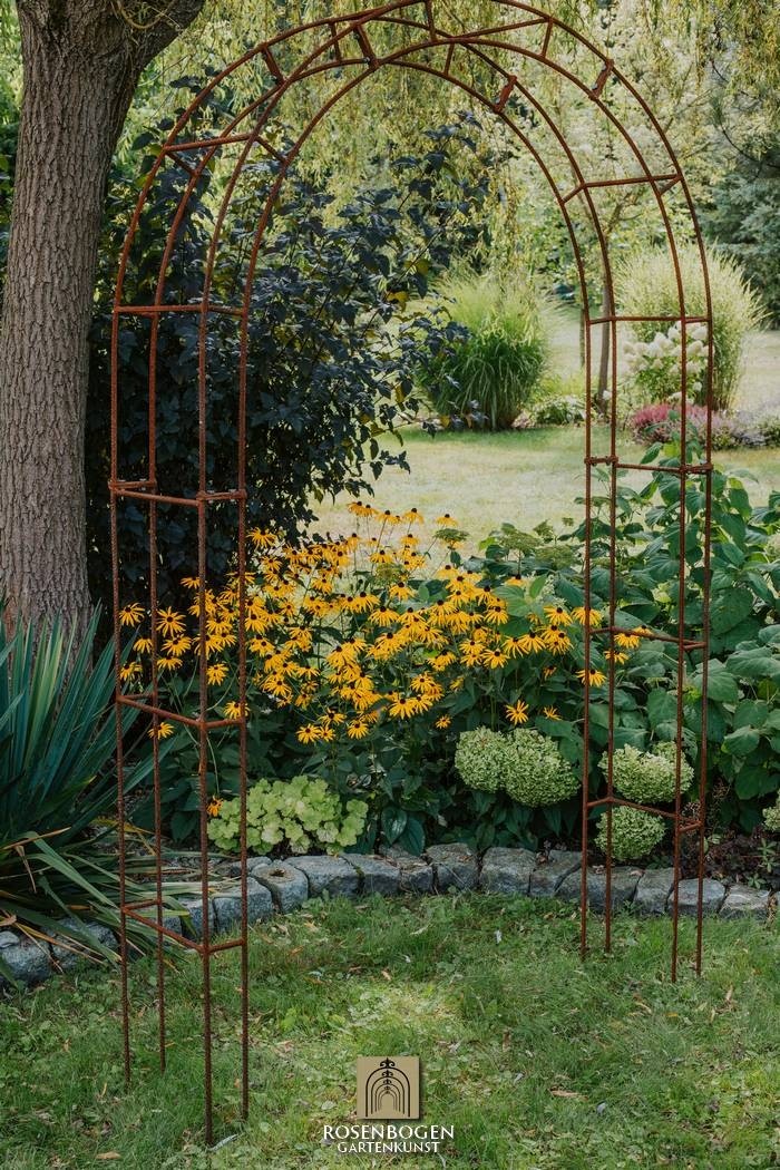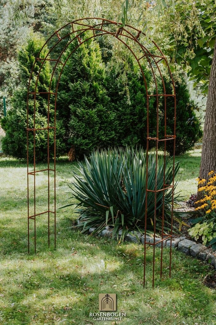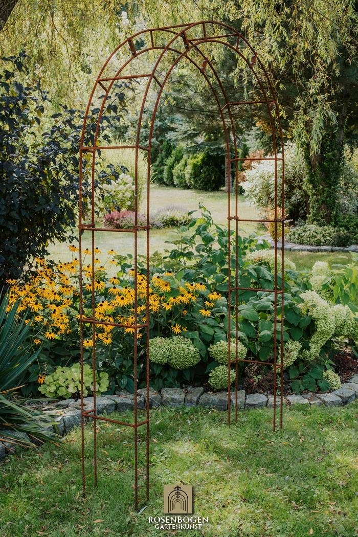 PETRA rosenbåge finns i en bredd på 140 cm. Tre varianter: Rost, svart pulverlackerad eller varmförzinkad.