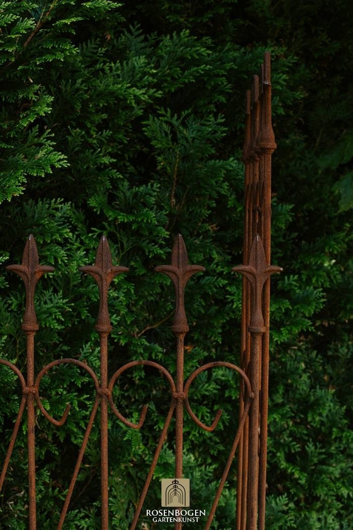 Den solida spaljén ABEL i handgjort järn kombinerar överlägsen stabilitet med tidlös estetik. Detta robusta trädgårdselement är väderbeständigt och perfekt för att stilfullt visa upp dina klätterväxter, oavsett om det är rosor, klematis eller andra växter.