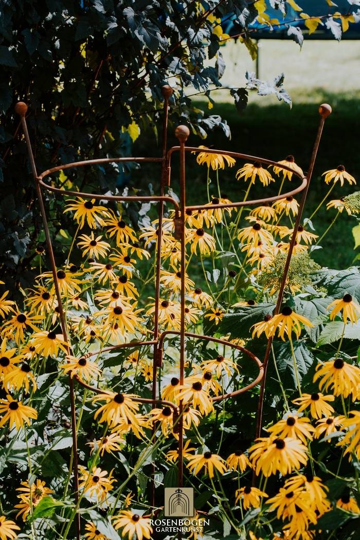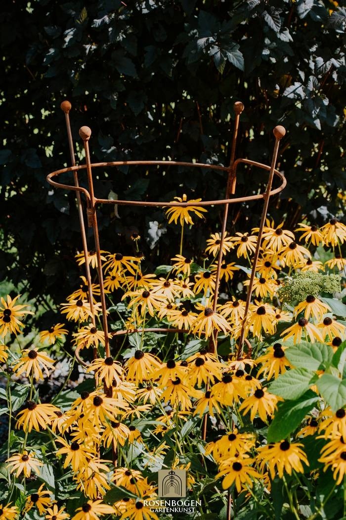 Den solida perennhållaren OVAL är tillverkad av ståltråd. Basen har en diameter på 53 cm. Alla typer av växter, som klätterrosor, klematis och andra klätterväxter, hittar en säker plats på denna robusta spaljé. Sidodelarna kan fästas på en yta med hjälp av de 2 tillgängliga borrhålen.