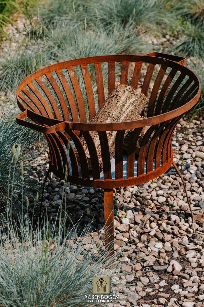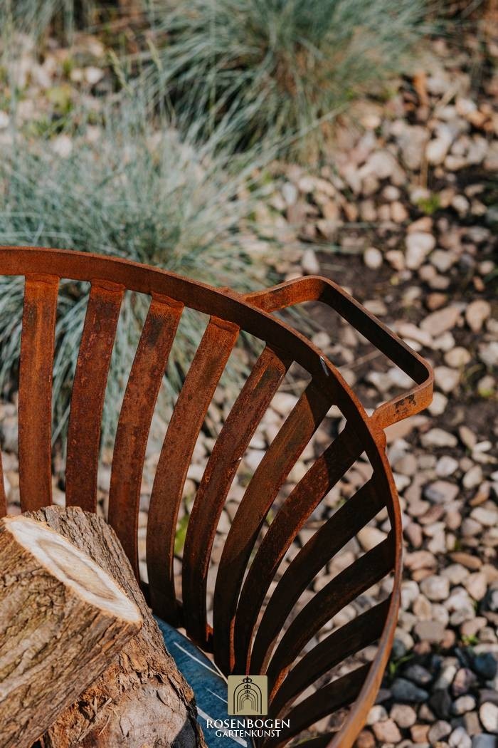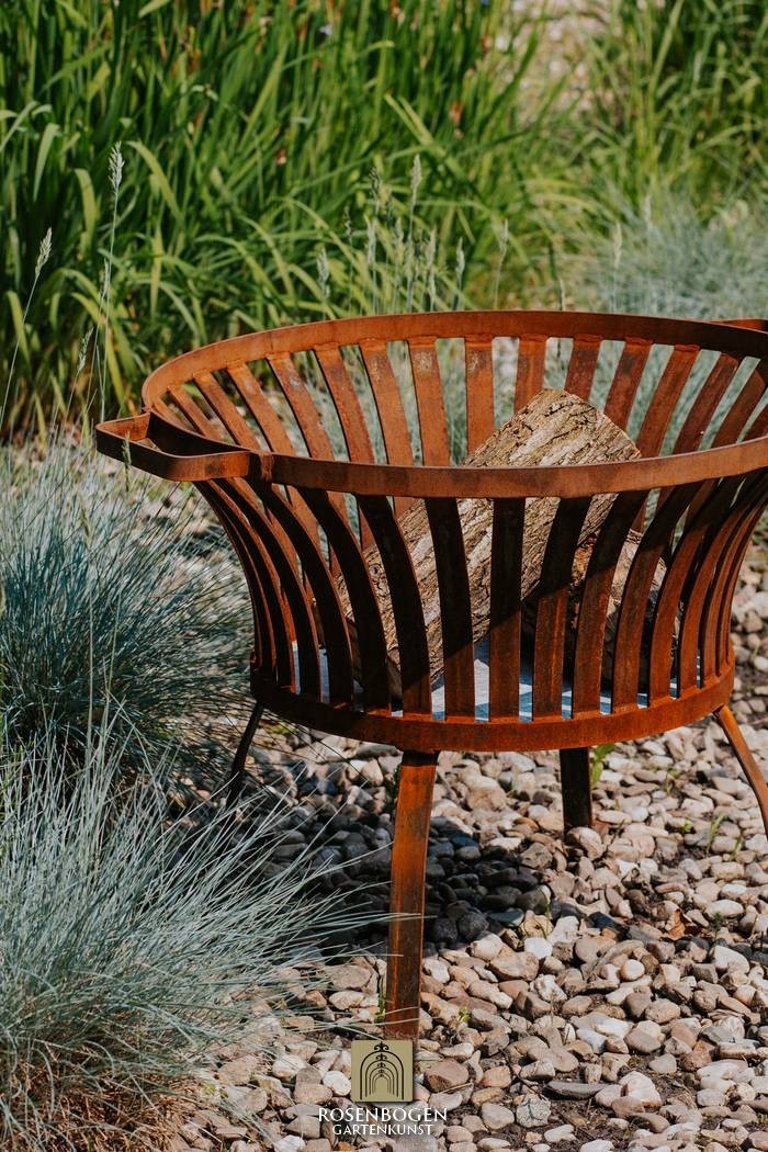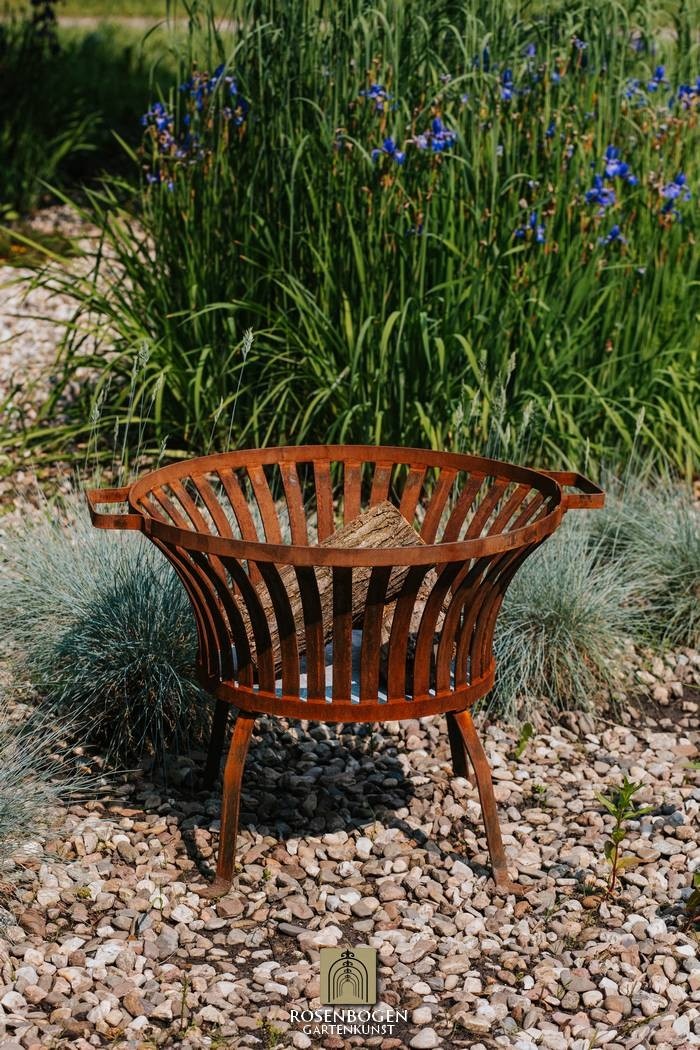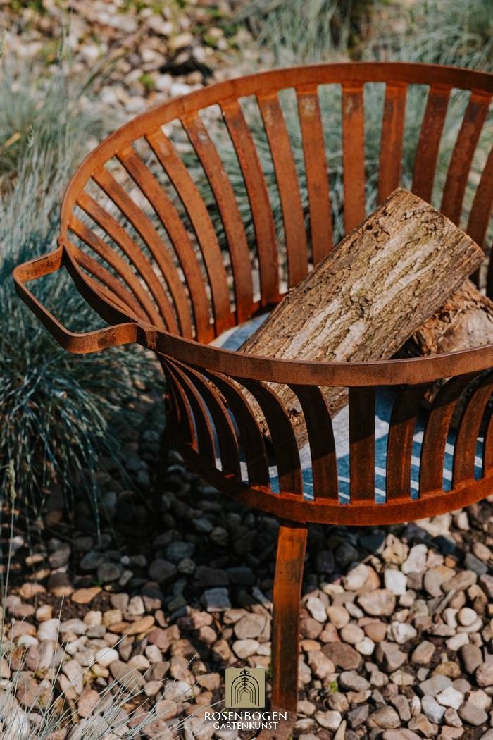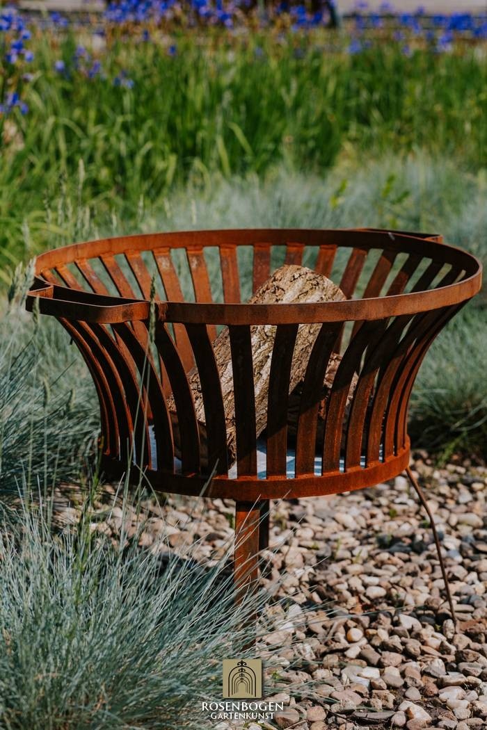 Den eleganta rostpatinan ger eldkorgen en naturlig karaktär som passar perfekt in i alla trädgårdsmiljöer - oavsett om de är moderna, lantliga eller romantiska. Perfekt för mysiga kvällar utomhus eller som en elegant ljuskälla i skymningen