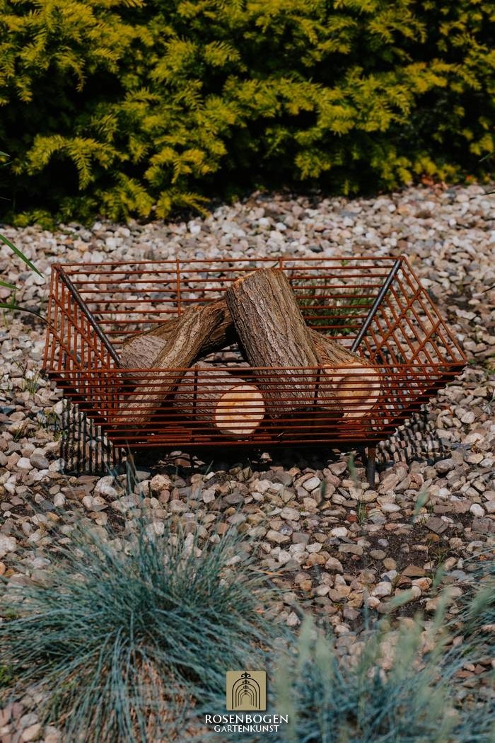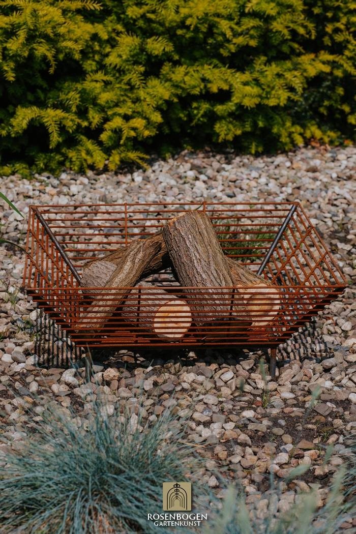 Elio är en modern, minimalistisk eldkorg som omedelbart fångar blicken med sin luftiga gitterstruktur. Med en höjd på 30 cm, en bredd på 67 cm och ett djup på 21 cm är den perfekt för snygga eldstäder på terrasser, grusytor eller i moderna trädgårdar