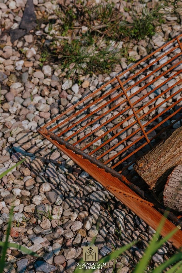 Elio är tillverkad av 5 mm och 10 mm tjock rundstål och väger bara 9 kg. Den kombinerar visuell lätthet med robust funktionalitet. Den öppna strukturen ger optimal luftcirkulation och en livlig, välventilerad eld. Den platta, geometriska formen gör den särskilt platsbesparande och ändå närvarande