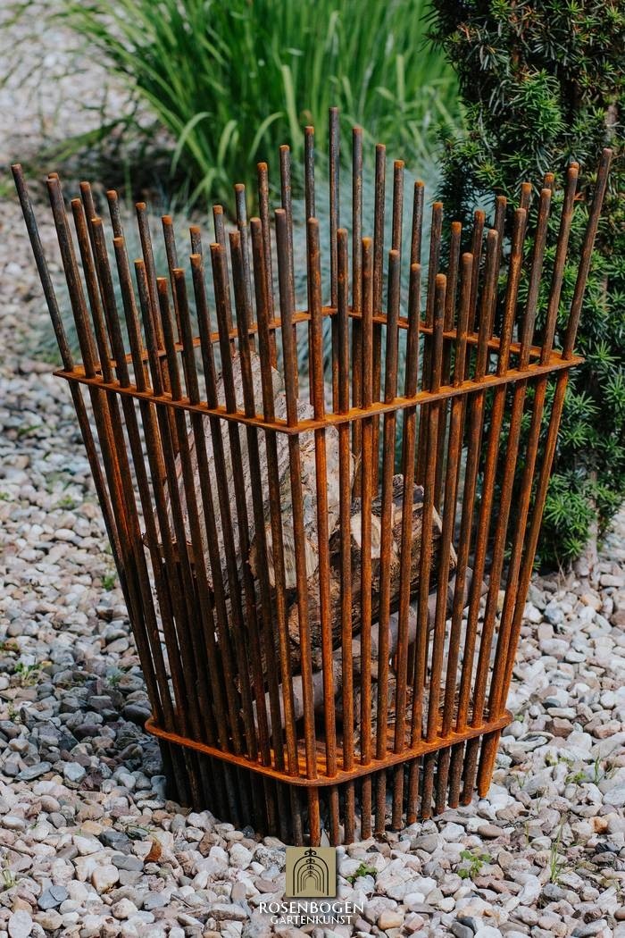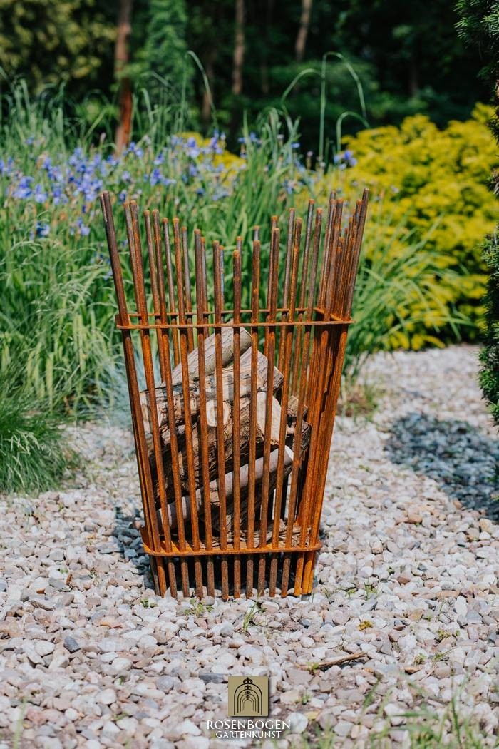 Torin eldkorg med sin höjd på 80 cm och smala form drar till sig allas uppmärksamhet - perfekt för moderna trädgårdar och terrasser.