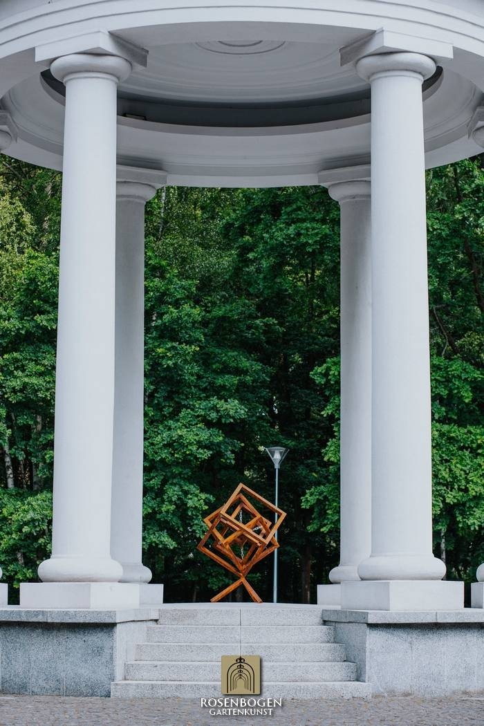 Trädgårdsdekoration Kub med en höjd på 130 cm och en bredd och ett djup på 95 cm vardera är det ett monumentalt blickfång för sofistikerade trädgårdar.