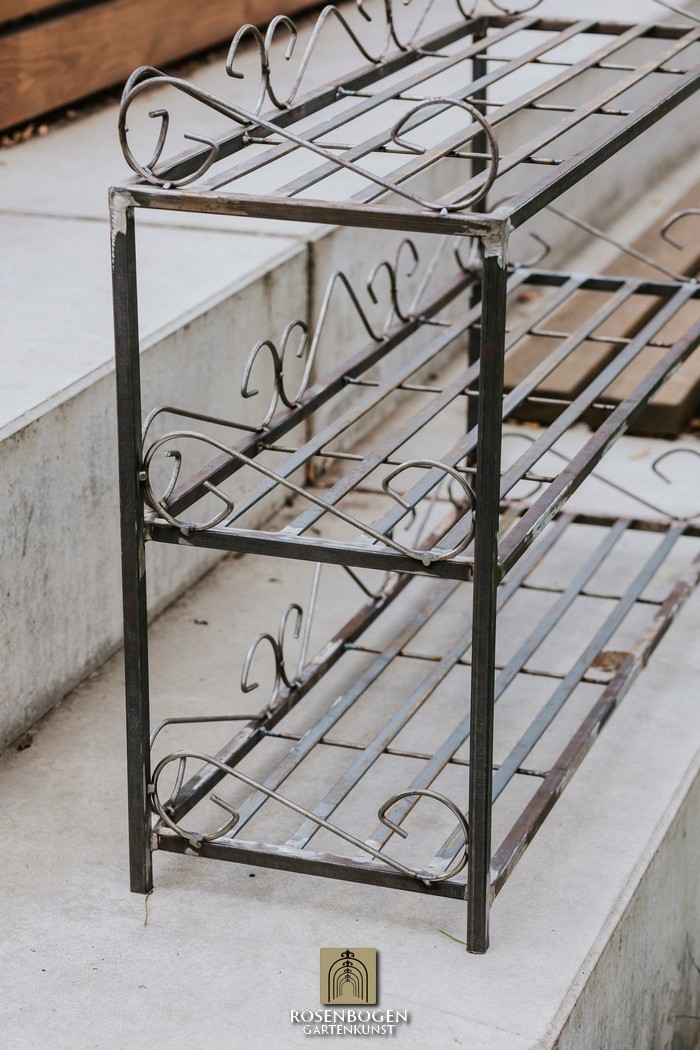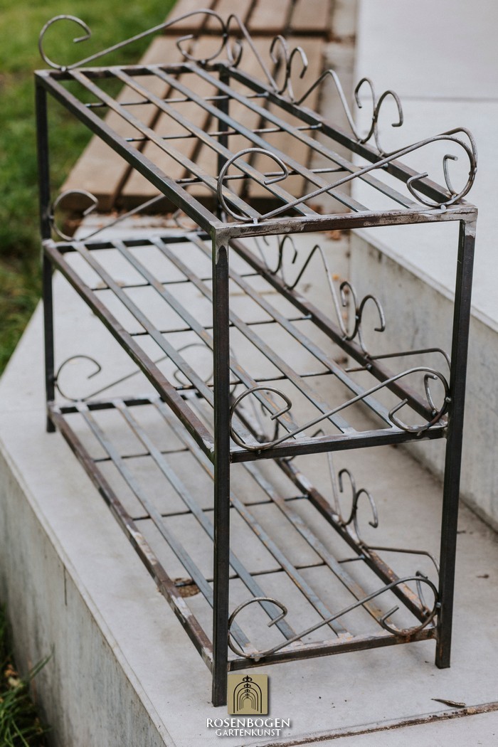 Hyllans mått är H x 92 cm, B x 66 cm, D x 30,5 cm och den totala vikten är 12 kg. It is made from 20x4 mm flat bars and 5 mm steel rod.