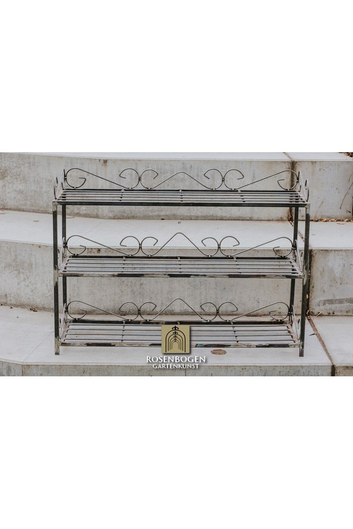 Vi har också tänkt på mer praktiska element i vårt sortiment. Det är därför vi erbjuder dig vår Leon-hylla i tre nivåer , som kan användas för att förvara krukväxter, trädgårdsredskap, tillbehör etc. Användningsmöjligheterna för denna hylla är mycket breda och dess charmiga dekor matchar också perfekt de andra produkterna i vårt sortiment